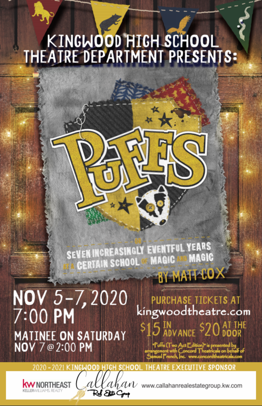 KHS Theatre presents PUFFS or Seven Increasingly Eventful Years of a Certain School of Magic at 7 p.m. November 5-7, and 2 p.m. November 7. Advanced tickets are $15 and and can be purchased at Kingwoodtheatre.com. Tickets are $20 at the door.