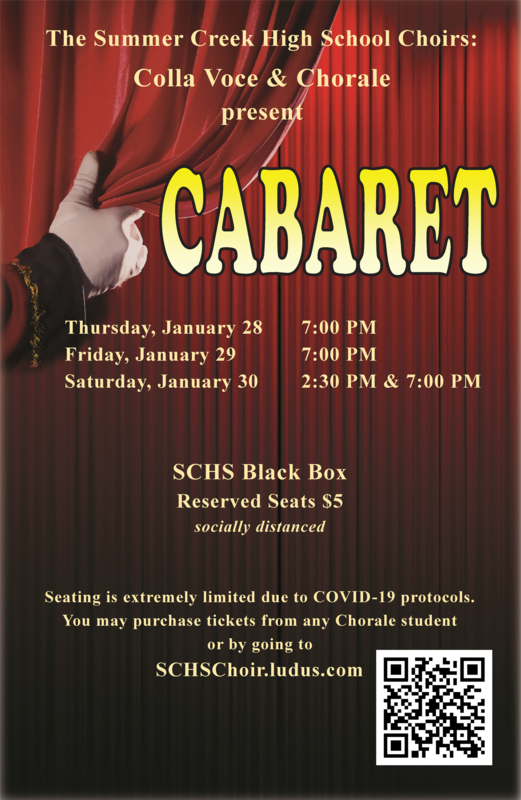The Summer Creek High School Choirs, Colla Voce & Chorale, present Cabaret. Showtimes are 7 pm January 28 - 30 and 2:30 pm January 30.