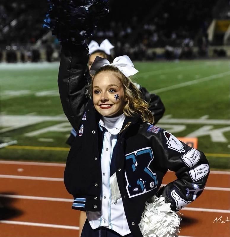 Emma knew she wanted to get involved in cheerleading after moving to Kingwood with her parents in 2008. She participated in scholastic cheer events like the Kingwood High School cheer clinic and joining a cheerleading team at age four. She has been a cheerleader for the past six years in Humble ISD, including two years at Creekwood Middle School and the past four years at Kingwood High School.