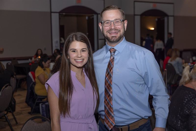 Humble ISDβs 2022-2023 Teachers of the Year were honored by the local business community at Partnership Lake Houstonβs annual Teachers of the Year Luncheon. Pictured are (from left): Jordan Stoll, Riverwood Middle School 2022-2023 Teacher of the Year; Matthew Roser, Riverwood Middle School Principal.