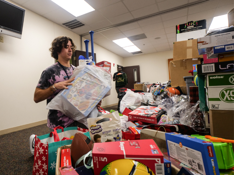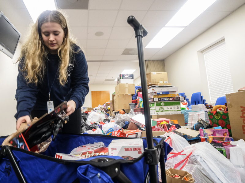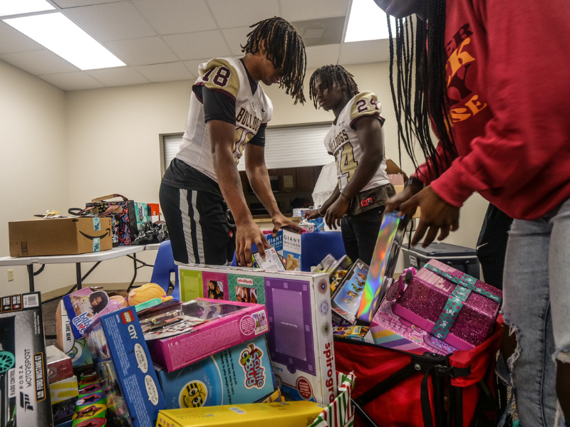 On Friday, high school students helped load their respective buses on campus before being driven around to area middle schools to pick up their toy donations. Once loaded up, the buses drove to the Light of the World Christian Fellowship to have the gifts unloaded.
