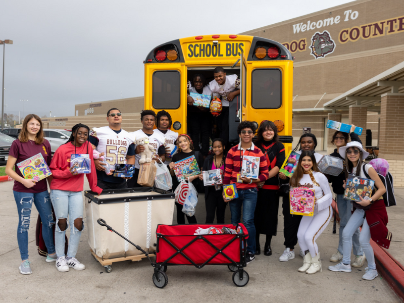 Humble ISD students involved in athletics and fine arts came together on Friday, December 9, 2022 to help “Fill the Bus”.