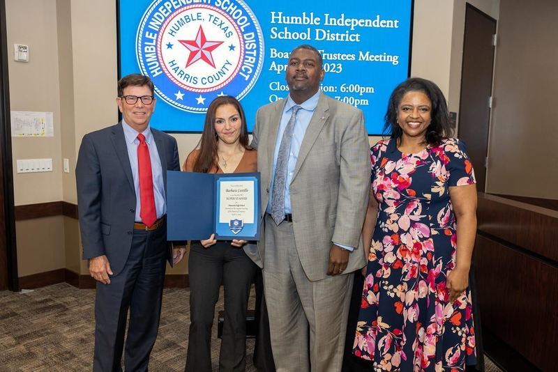 Humble ISDβs Super Staffers of the Month were recognized at the regularly scheduled Board Meeting on April 11. This monthβs Super Staffer Awards is sponsored by Whataburger.