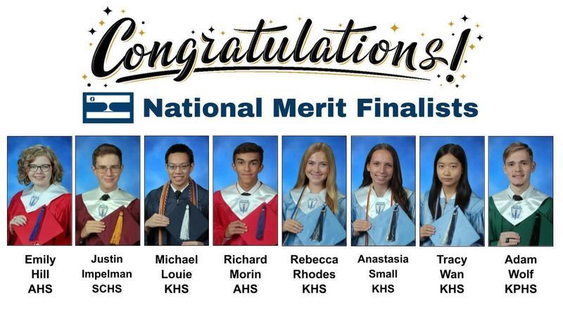 Pictured above in alphabetical order: Emily Hill, AHS; Justin Impelman, SCHS; Michael Louie; KHS; Richard Morin, AHS; Rebecca Rhodes, KHS; Anastasia L. Small, KHS; Tracy Wan, KHS; and Adam T. Wolf, KPHS