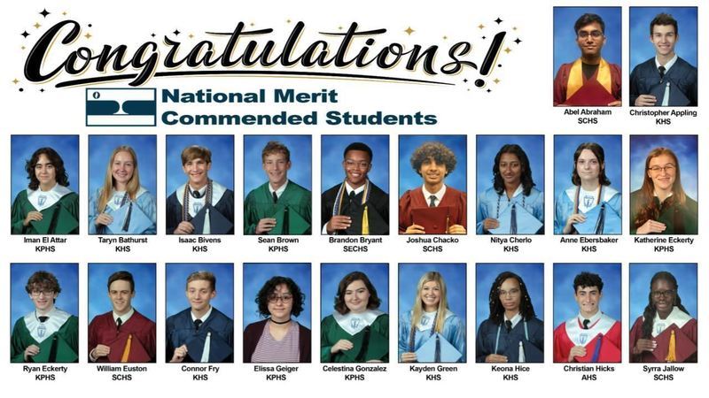 Pictured above in alphabetical order: Abel Abraham, SCHS; Christopher Appling, KHS; Iman El Attar, KPHS; Taryn Bathurst, KHS; Isaac Bivens; KHS; Sean Brown, KPHS; Brandon Bryant, SECHS; Joshua Chacko, SCHS; Nitya Cherlo, KHS; Anne Ebersbaker, KHS; Katherine Eckerty, KPHS; Ryan Eckerty, KPHS; William Euston, SCHS; Connor Fry, KHS; Raphael Ossa Garcia, KHS; Elissa Geiger, KPHS; Celestina Gonzalez, KPHS; Kayden Green, KHS; Keona Hice, KHS: Christian Hicks, AHS; Syrra Jallow, SCHS