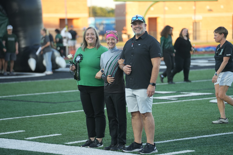 Shannon, Ace and Lance Richards pose for a photo during a pregame senior night ceremony at Turner Stadium on Friday, October 20, 2023. Photo by Arleigh Doehring (KPTimes.com)